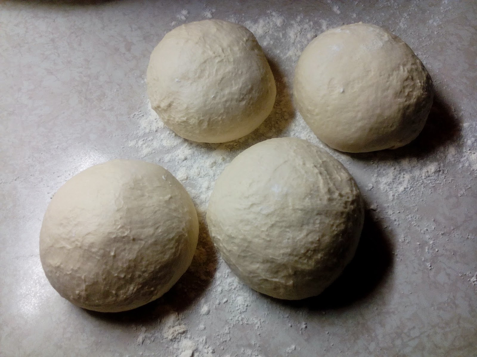 Когато тестото е готово се разделя на четири части,намазват се с мазнина и се поставят в съд също намазан с мазнина.